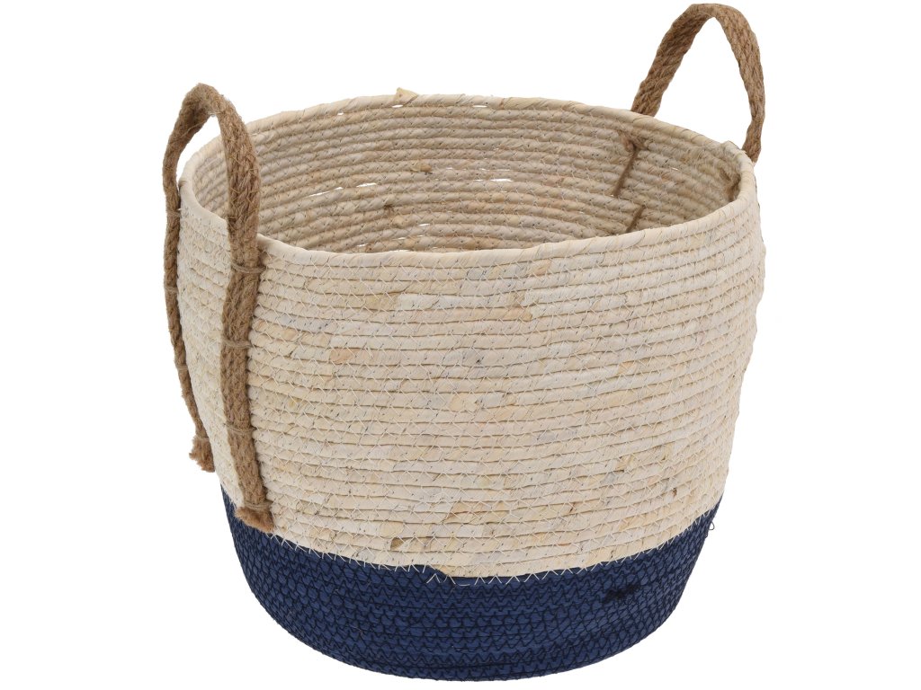 Koše jsou vyrobeny z vrby a ratanu. Košíky mají lanová ucha. Kombinace světlé přírodní barvy a tmavě modré spodní části zapadá do přímořského stylu.