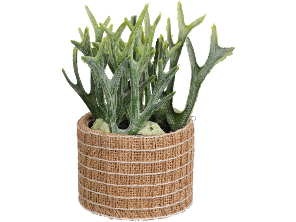 Umělý sukulent v přírodním květináčku Natural o rozměrech 9x9x15 cm je skvělou volbou pro ty, kteří chtějí do svého domova přidat zelený prvek, aniž by museli věnovat čas péči o živé rostliny. Tento realisticky vypadající sukulent je zasazen v přírodním květináčku z juty, který dodává dekoraci příjemný rustikální vzhled. Květináč z juty je ekologický a jeho přírodní textura dokonale doplňuje zelený vzhled sukulentu, což dělá z této dekorace stylový doplněk pro každý interiér.