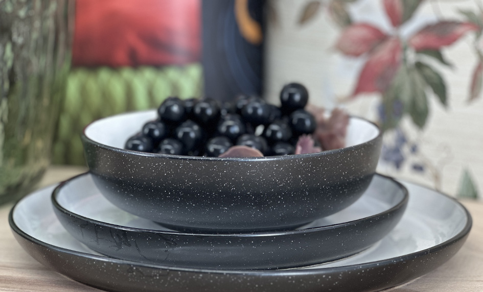 Kolekce keramických talířů „Land“ představuje elegantní kombinaci kontrastních barev, která dodá vašemu stolování moderní a sofistikovaný nádech. Tato kolekce obsahuje mělké, dezertní a polévkové talíře. Každý talíř má čistě bílou vrchní stranu, která skvěle zvýrazní vzhled každého pokrmu. Spodní strana je černá, s jemným kropenatým vzorem, jenž dodává talířům výrazný a jedinečný charakter.