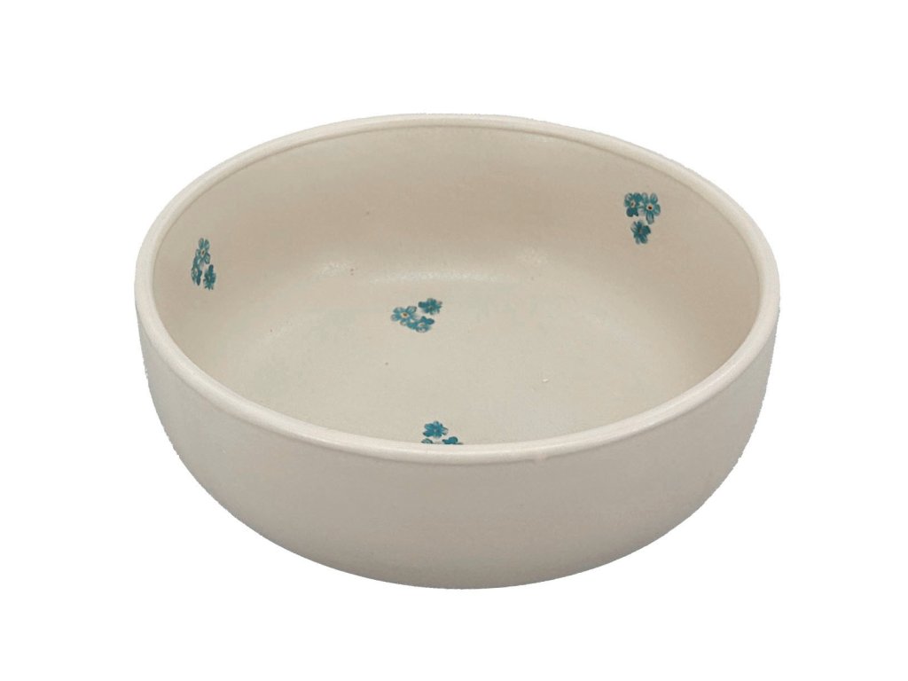 Miska Cream Pomněnka přináší jemný venkovský styl s romantickým modrým květinovým dekorem, který krásně vyniká na smetanovém podkladu. Tento rustikální design působí příjemně domácky a evokuje atmosféru tradičního keramického nádobí.