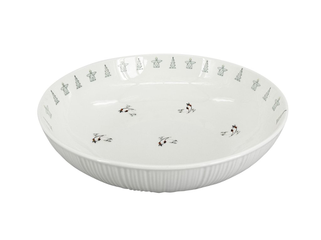 Přineste na svůj stůl špetku vánočního lesku s porcelánovou mísou Croft Advent Berries. S průměrem 22,5 cm je ideální pro servírování příloh k hlavnímu jídlu, čerstvého salátu, ale také pro vánoční cukroví nebo ovoce. Její vnitřní okraj zdobí hravé střídání vánočních motivů malých andělů a stromečků, které pochází z naší původní kolekce Croft Advent. Střed mísy je pak oživen novým dekorem větviček s červenými bobulemi, které dodávají mísě jiskru a harmonii.