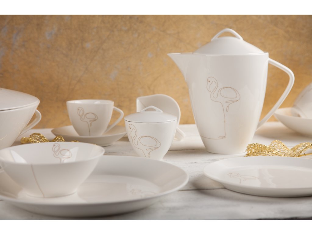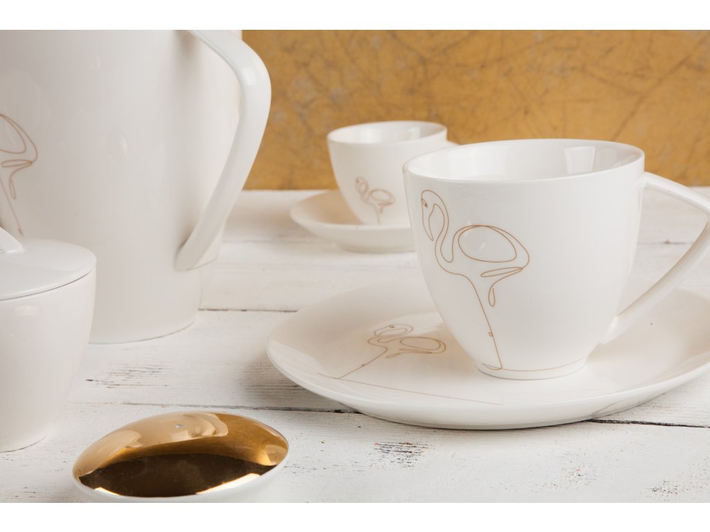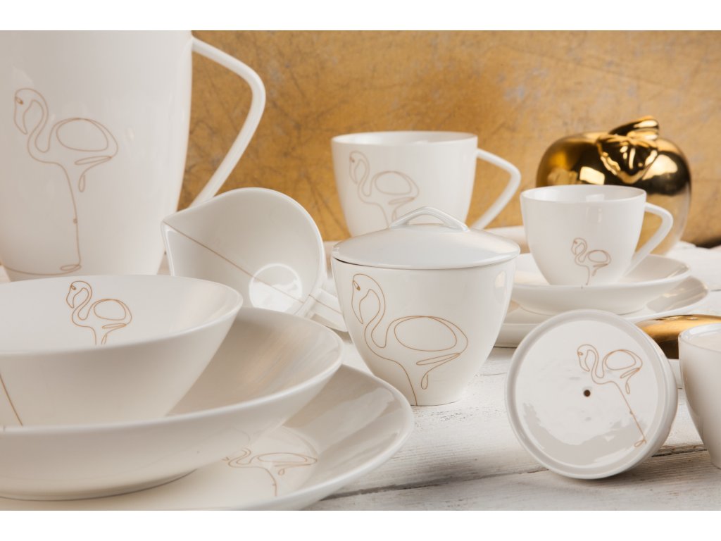 Trendy motiv „plameňáka“ v moderním provedení i barevnosti. Jakostní porcelán z kolekce Noble od české značky by inspire ... porcelán s českou duší ozdobený perokresbou plameňáka v matné zlaté barvě je prostě jedinečný.