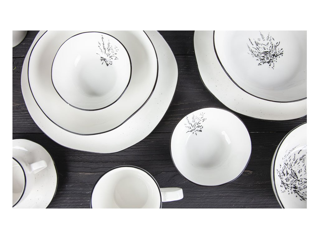 Kolekce Esence od české značky by inspire...porcelán s českou duší. Tato jídelní souprava bude skutečnou esencí Vašeho života. Stejně jako u kolekce Legenda se jedná o kvalitní kostní porcelán, který má nepravidelný tvar, jemně kropenatý povrch a černou okrajovou linku. Navíc disponuje černým dekorem v podobě trsu květin. Vyčárkovaná malba dekoru skvěle podtrhuje kropenatý povrch. Můžete tedy kombinovat s kolekcí Legenda.