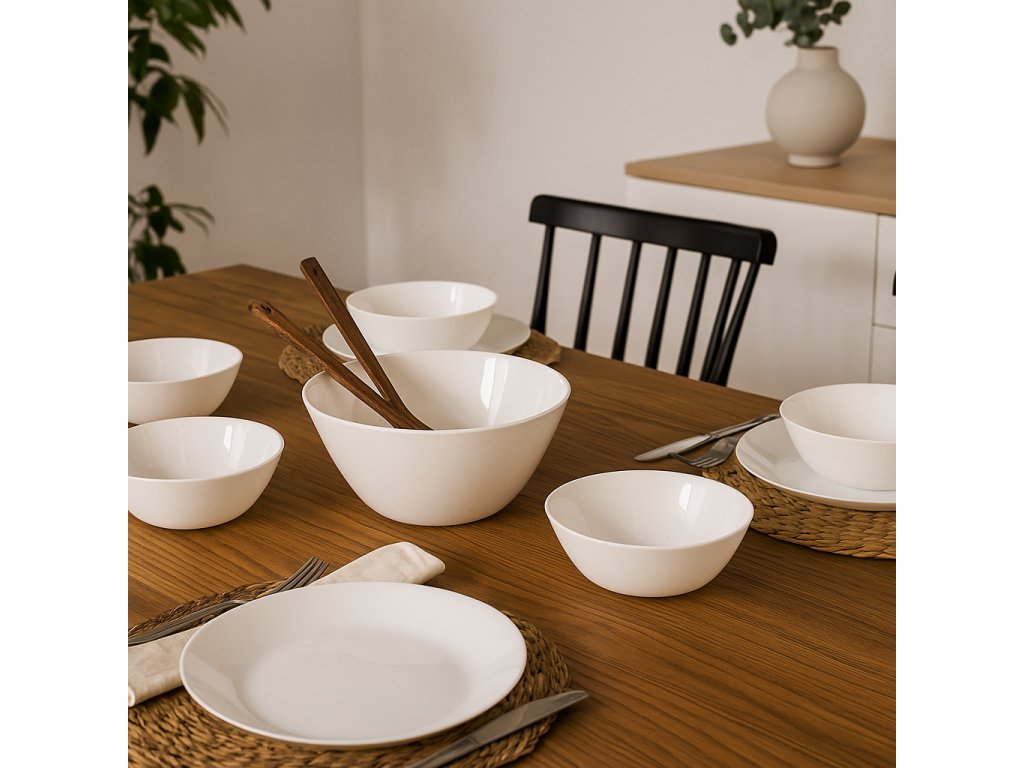 ✔ Mléčně bílý vzhled – ladí s jakýmkoliv jídelním servisem