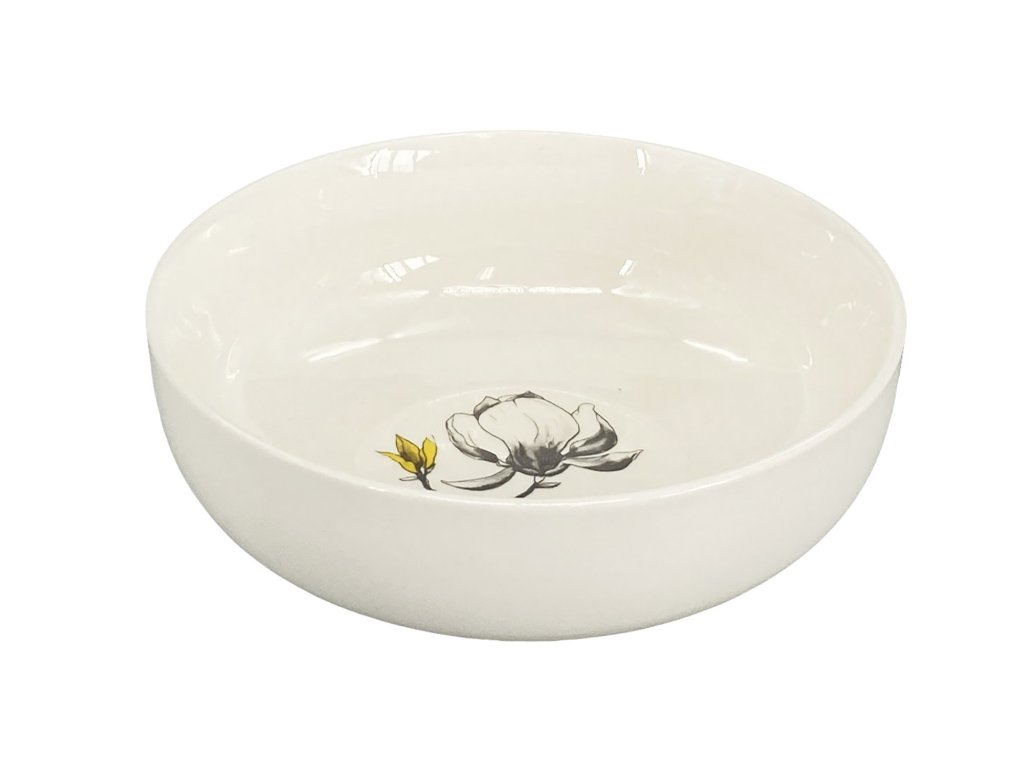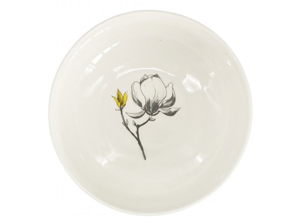 Miska Fine Twig, bílá s dekorem magnolie v šedožluté barevné kombinaci.