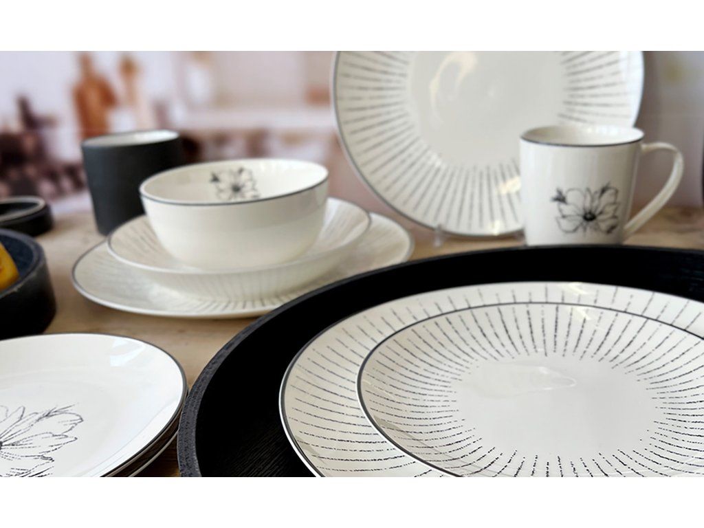 Náš proces pod značkou by inspire je poctivý: vlastní dekor navrhneme, naneseme na porcelán a s láskou upečeme v naší peci. Díky tomuto postupu je černobílý dekor extrémně odolný. Celá sada je plně uzpůsobena pro mytí v myčce nádobí i ohřev v mikrovlnné troubě. Vytvořte si harmonický servis a doplňte tyto misky o talíře nebo hrnky ve stejném designu.