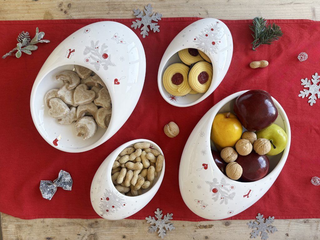 Tato oválná servírovací mísa je vyrobena z kvalitní keramiky, která je odolná a příjemná na dotek. Její autorský český design pochází z naší dílny by inspire, kde navrhujeme dekor, aplikujeme ho na nádobí a pečlivě vypalujeme v naší peci. To zaručuje, že dekor drží sytost a je odolný. Keramická mísa Koleda je navržena pro maximální pohodlí, proto ji můžete bez obav používat v mikrovlnné troubě pro ohřívání a mýt v myčce na nádobí. Sestavte si kompletní set s menšími mísami Koleda Bean S pro ořechy a cukroví, a vytvořte tak dokonalou a sjednocenou sváteční tabuli.