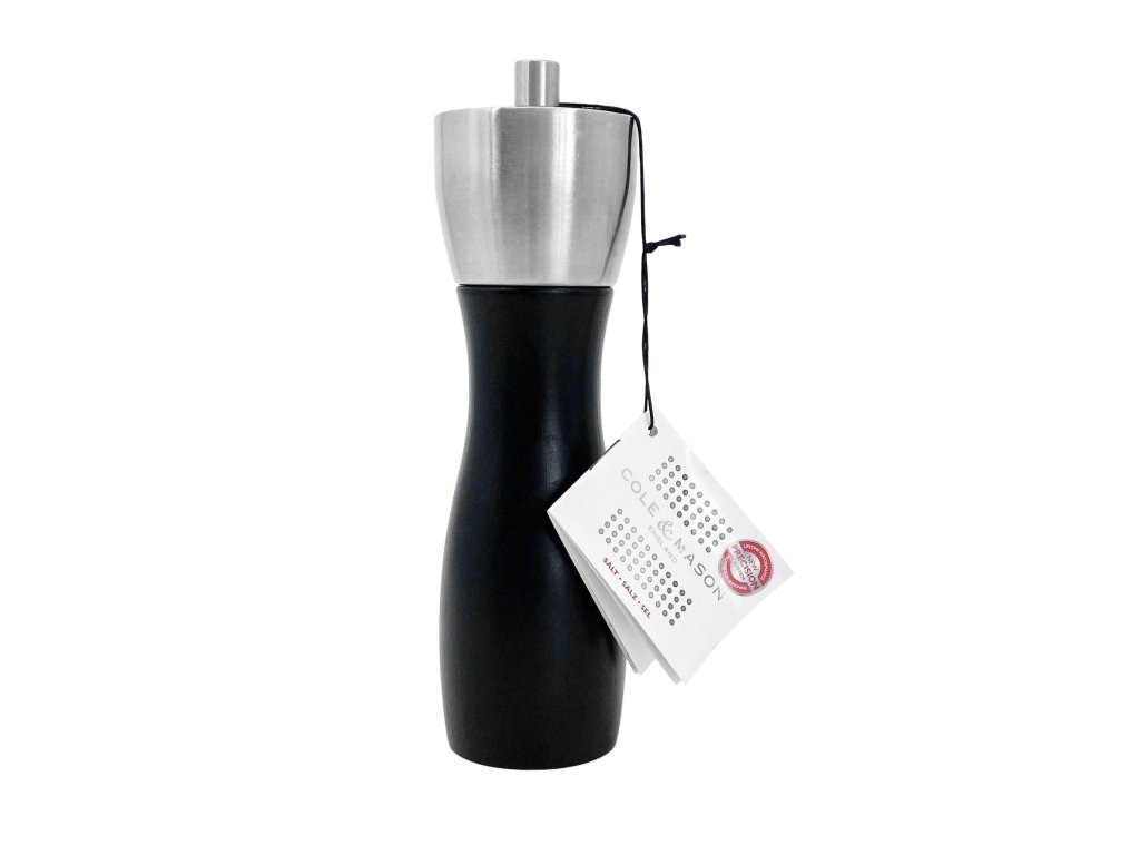 Cole & Mason - dřevěný mlýnek na pepř v černém provedení. Hrubost mletí jednoduše nastavíte tak, že utáhnete nebo povolíte závit. Mlýnky mají pro pepř brusič z uhlíkové oceli a keramický mlýnek na bázi diamantů pro sůl. Mlýnek je vhodný pro každodenní využití na jídelním stole, ale také v kuchyni při přípravě pokrmů.