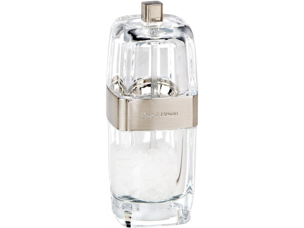 Cole & Mason - transparentní, stylový mlýnek na sůl v moderním vzhledu. Hrubost mletí jednoduše nastavíte tak, že utáhnete nebo povolíte závit. Mlýnky mají pro pepř brusič z uhlíkové oceli a keramický mlýnek na bázi diamantů pro sůl. Mlýnek je vhodný pro každodenní využití na jídelním stole, ale také v kuchyni při přípravě pokrmů.