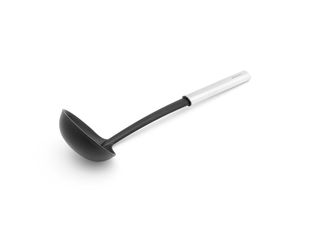 Tato nepřilnavá naběračka na polévku je ideálním pomocníkem do kuchyně. Kombinuje černou a stříbrnou barvu, která se hodí do každé moderní kuchyně. Vyrobena z kvalitního nylonu a oceli, což zaručuje dlouhou životnost a odolnost. Ergonomická rukojeť umožňuje pohodlné používání. Naběračka je šetrná k nepřilnavým povrchům a snadno se čistí. Perfektní pro podávání všech druhů polévek a omáček.