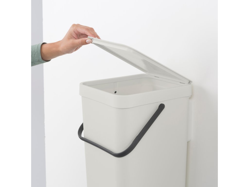 Brabantia směřuje do budoucnosti ke 100% recyklovatelnosti. Přinesla tedy na náš trh řadu Sort&Go. Jednoduché plastové koše se skvělým designem, který je Brabantii vlastní. Můžete vybírat ze 4 barev a 4 velikostí. Koše můžete mít postavené nebo je můžete zavěsit na zeď (závěsný úchyt je součástí balení), další možností jsou i vestavné koše (součástí vestavných košů je odolný rám, který je kompatibilní s běžnými korpusy kuchyňských skříněk) . Vytvořte si svojí zeď pro recyklaci a třiďte odpad podle sebe. Vyrobeno z kvalitního plastu. Koše jsou opatřeny velkou rukojetí. Víko drží otevřené nebo můžete celé víko odejmout.