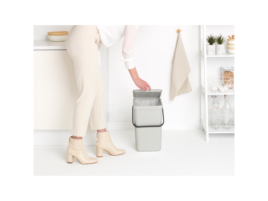 Brabantia směřuje do budoucnosti ke 100% recyklovatelnosti. Přinesla tedy na náš trh řadu Sort&Go. Jednoduché plastové koše se skvělým designem, který je Brabantii vlastní. Můžete vybírat ze 4 barev a 4 velikostí. Koše můžete mít postavené nebo je můžete zavěsit na zeď (závěsný úchyt je součástí balení), další možností jsou i vestavné koše (součástí vestavných košů je odolný rám, který je kompatibilní s běžnými korpusy kuchyňských skříněk) . Vytvořte si svojí zeď pro recyklaci a třiďte odpad podle sebe. Vyrobeno z kvalitního plastu. Koše jsou opatřeny velkou rukojetí. Víko drží otevřené nebo můžete celé víko odejmout.