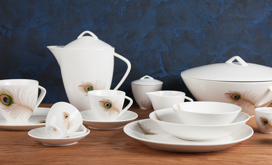 Pro odvážné milovníky luxusu je určena tato kolekce značky by inspire zdobená zlatavými pavími pery. Páv je královský pták a taková je i tato kolekce. Noblesní, hrdá, krásná  a nepřehlédnutelná. Smetanový nádech na kulatých porcelánových talířích dodává porcelánové sadě jemnou a sofistikovanou atmosféru. Zlatý dekor pak povyšuje kvalitní talíře na talíře luxusní.