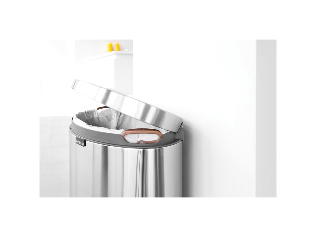 Výhodou košů Flatback je jeho tvar – rovná zadní plocha umožňuje odpakový koš umístit těsně ke zdi nebo kuchyňské lince. Šetří vám místo. Má ideální velikost do větší domácnosti, či kuchyně, kde naplno vynikne jho dokonalost a krása.