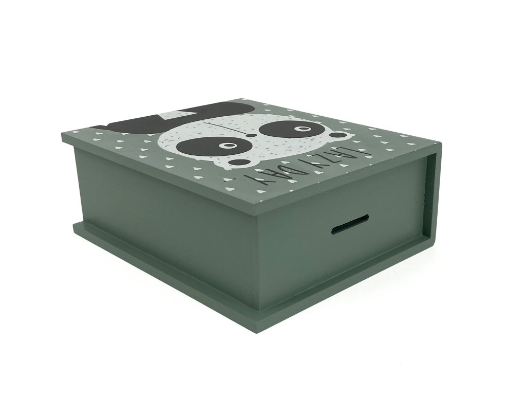 Kasičku ve tvaru knížky chytře schováte mezi knihy a nikdo ji nenajde. To se dětem líbí, milují tajnosti. Pokladnička je vyrobena ze dřeva s překrásnými malovanými obrázky zvířátek.