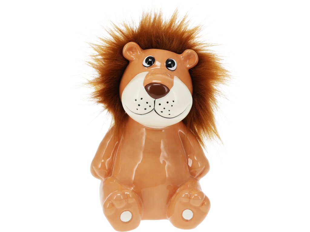 Roztomilý lev s velkou huňatou hřívou je nejen skvělou pokladničkou, ale také originálním dekorativním doplňkem. Vyroben z pevného dolomitu, rozměr 11 × 11 × 15 cm, s jemně lesklou glazurou a textilním „hairy“ účesem, který přitahuje pozornost.