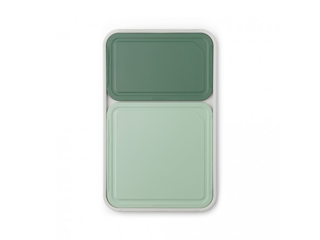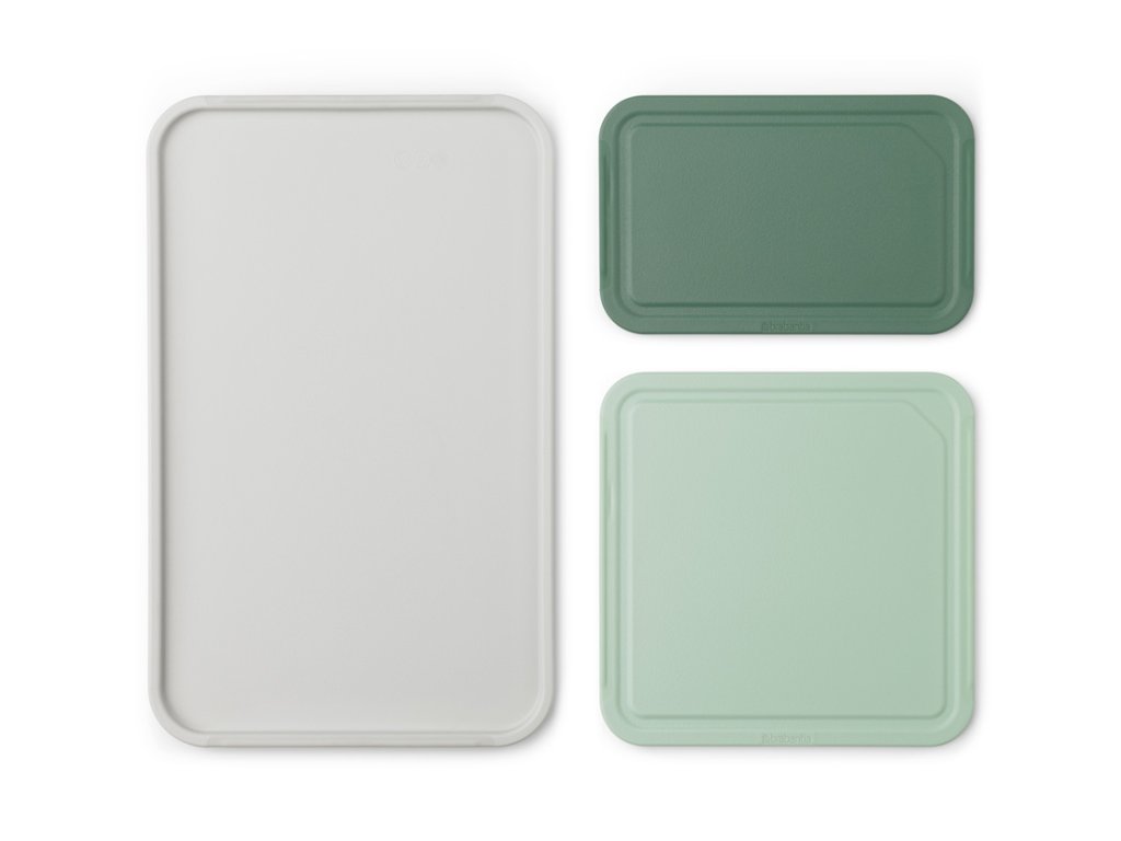 Snadné skladování díky možnosti stohování a snadné čištění, protože prkénka lze mýt v myčce na nádobí. Bezproblémové použití je zajištěno díky 5-leté záruce a servisu. Tato sada je také udržitelnější volbou, jelikož je 100 % recyklovatelná po použití. Barvy: světle šedá, světle zelená, zelená.