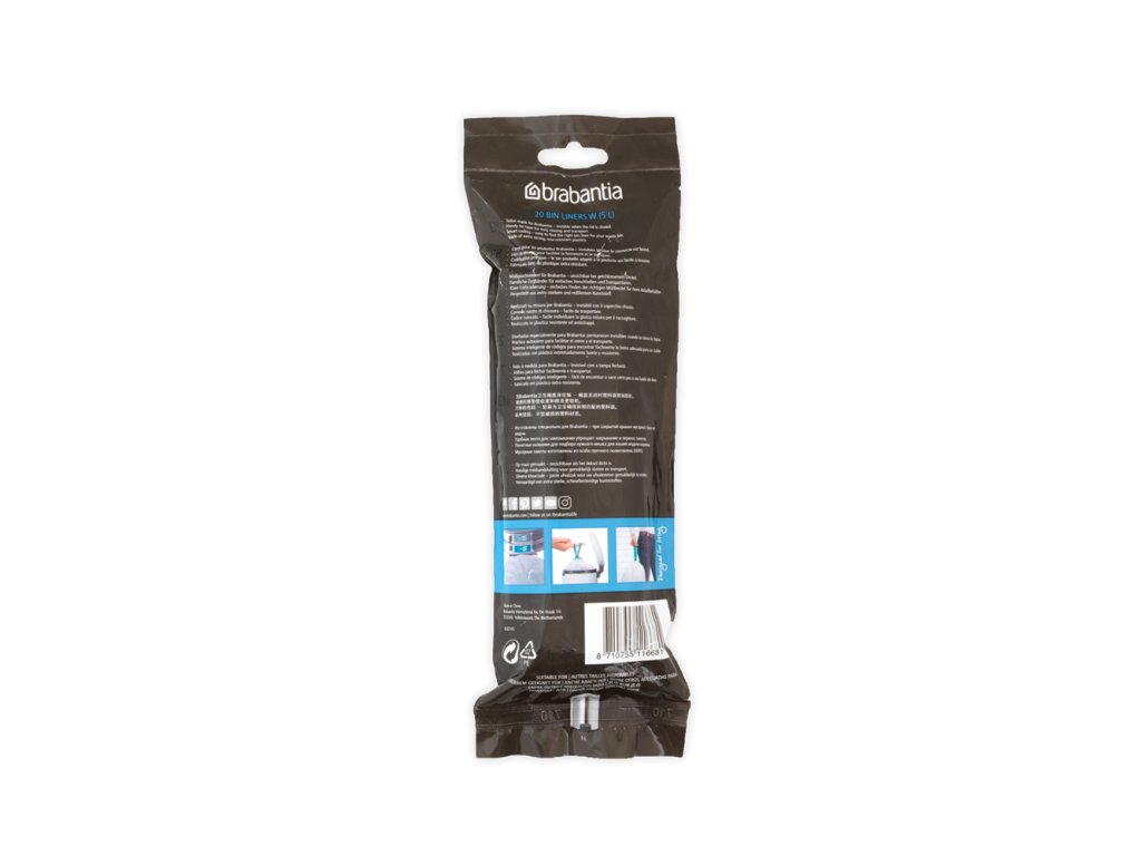 Odpadní pytle Brabantia jsou navrženy na míru vašeho koše Brabantia. Odpadkový pytel zkrátka z venku neuvidíte. Pytle jsou vyrobeny z kvalitního plastu, aby při manipulaci s odpadem nedošlo k havárii. Samozřejmostí je stahovací páska pro snadnější manipulaci s odpadem. Unikátní barevný kód na obalu pytlů odpovídá barevnému kódu na vašem koši.