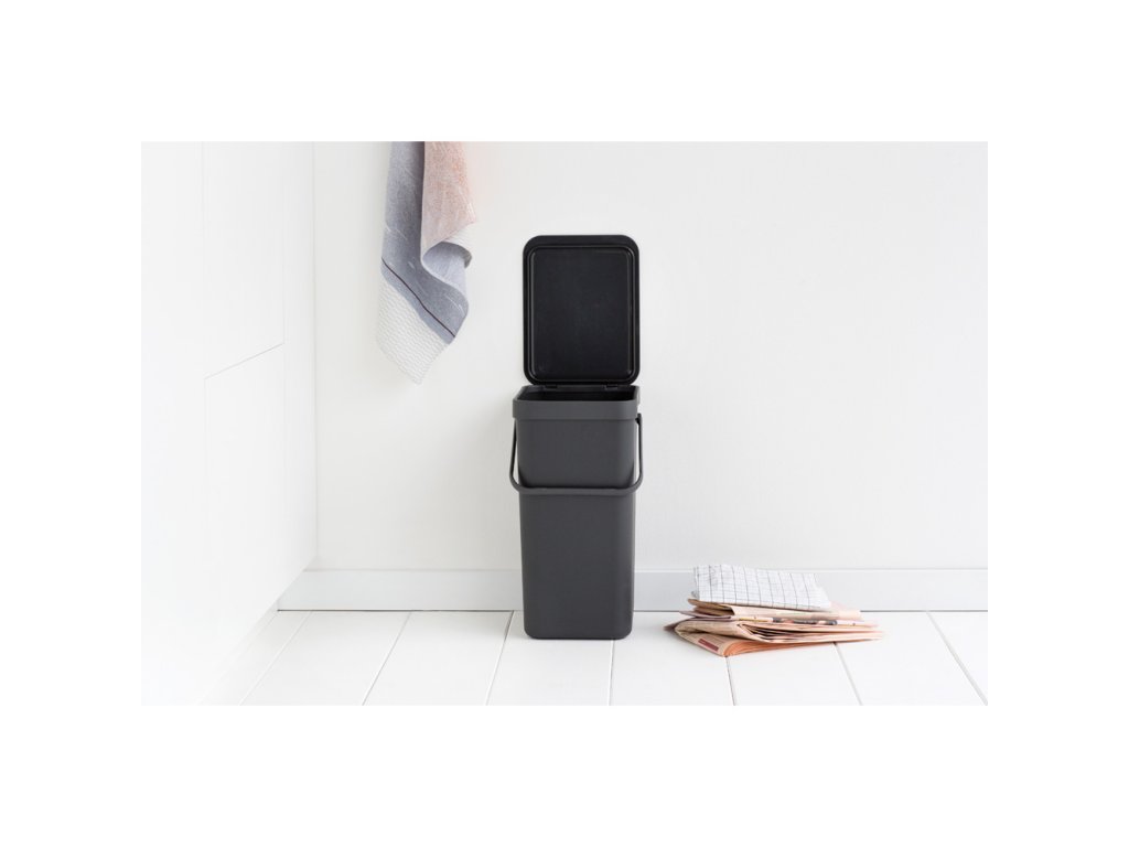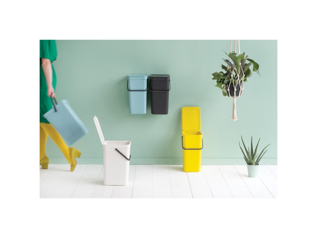 Brabantia směřuje do budoucnosti ke 100% recyklovatelnosti. Přinesla tedy na náš trh řadu Sort&Go. Jednoduché plastové koše se skvělým designem, který je Brabantii vlastní. Můžete vybírat ze 4 barev a 4 velikostí. Koše můžete mít postavené nebo je můžete zavěsit na zeď (závěsný úchyt je součástí balení), další možností jsou i vestavné koše (součástí vestavných košů je odolný rám, který je kompatibilní s běžnými korpusy kuchyňských skříněk) . Vytvořte si svojí zeď pro recyklaci a třiďte odpad podle sebe. Vyrobeno z kvalitního plastu. Koše jsou opatřeny velkou rukojetí. Víko drží otevřené nebo můžete celé víko odejmout.