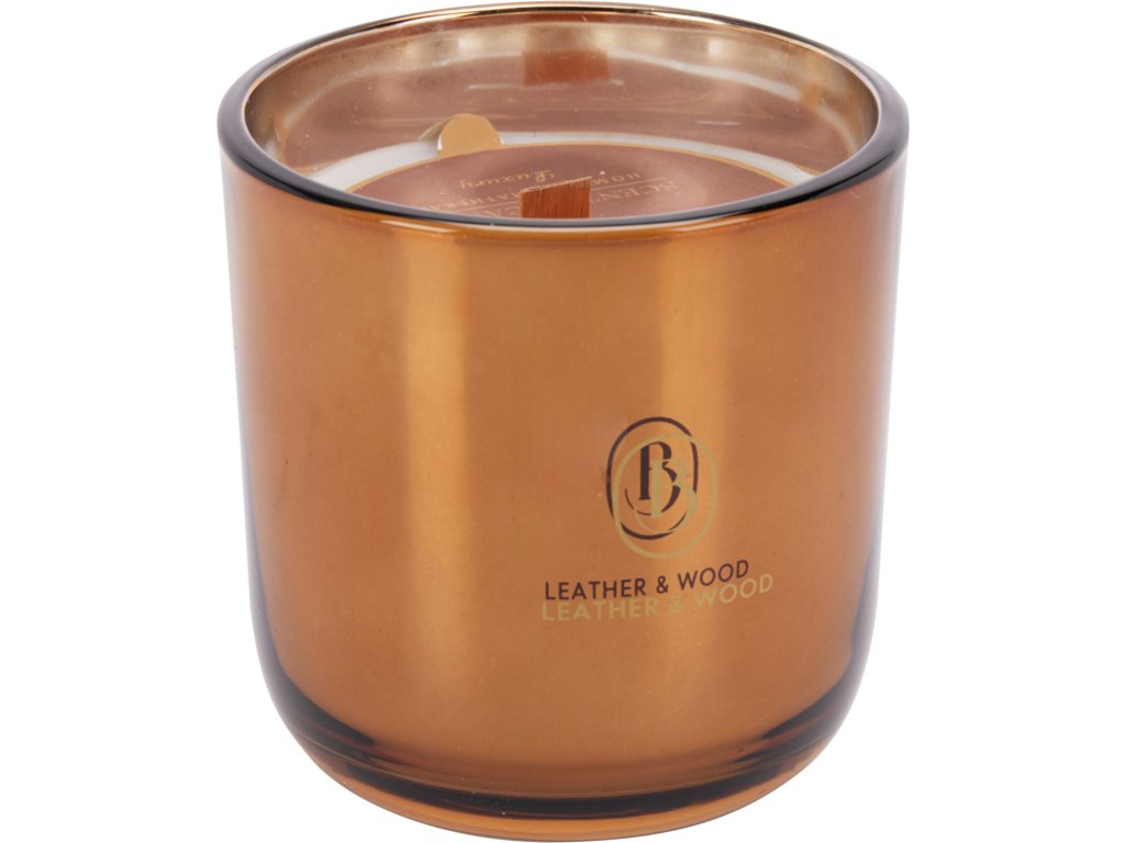 Luxusní vonná svíčka Kůže a dřevo s dřevěným knotem, měděná (9,5x9 cm)