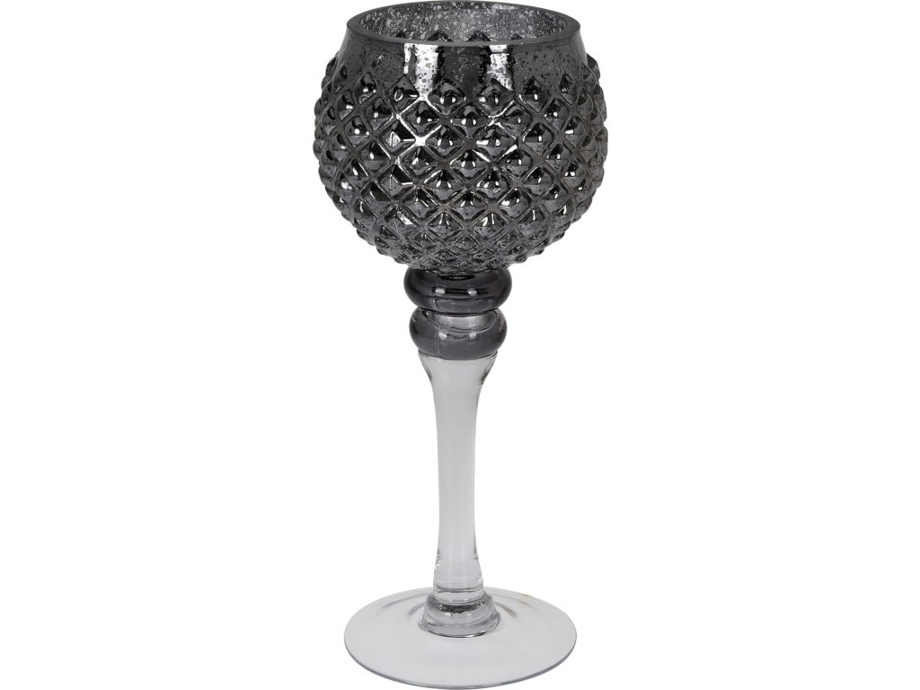 Luxusní skleněné svícny na noze - sada 3 ks různých velikostí a designu. Šedé kouřově zabarvené sklo s jemným třpytivým efektem vytváří velice elegantní dojem. Každý svícen v jiné velikosti a jiným embosovaným designem. Tyto designové svícny jsou to pravé pro milovníky luxusu a krásných věcí.