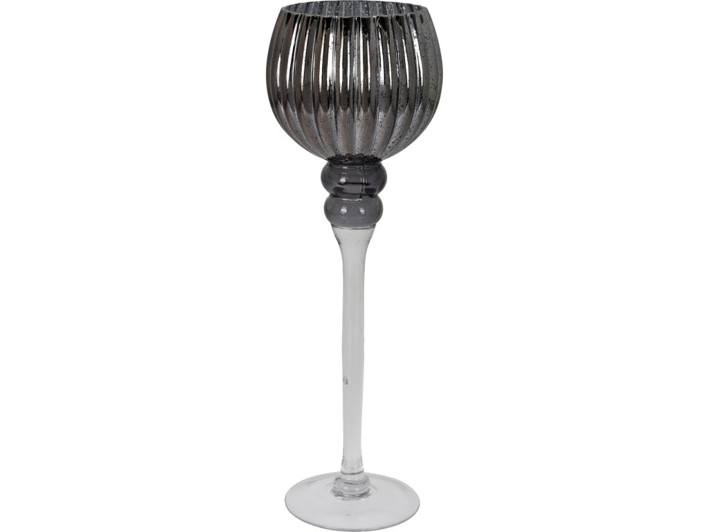 Set 3 ks skleněných svícnů na noze, (30cm, 35cm, 40cm),šedá kouřová