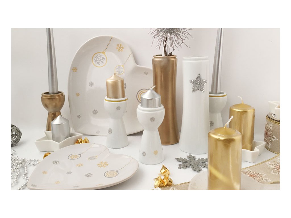 Svícen velký Vánoce, Vločky zlatá/stříbrná