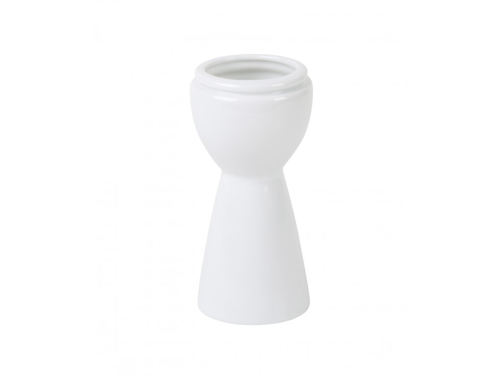 Keramický bílý svícen na jednu svíčku ve tvaru menšího válce.
