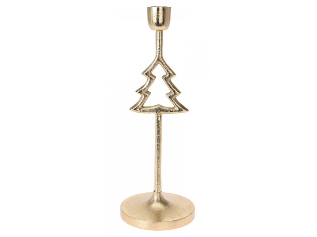 Vánoční svícen ve zlaté barvě s vánočním symbolem hvězda, stromek nebo anděl.