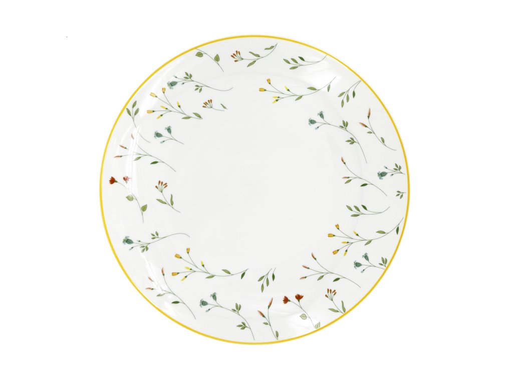 Bílý porcelánový talíř zdobí rozptýlený dekor drobných, pestrobarevných lučních kvítků a bylinek, které se volně vznáší po ploše. Vzor působí svěže a vzdušně, přičemž ústředním prvkem je výrazný, sytě žlutý okrajový lem. Tento prvek nejen oživuje celou plochu, ale zároveň vizuálně definuje talíř Linea Botanic. Pro vytvoření hravého a slunečného setu lze tento talíř skvěle kombinovat i s čistým porcelánem Linea Yellow (bílý porcelán se žlutou okrajovou linkou). Hledáte-li porcelán s botanickým dekorem a veselou barvou, tento kousek je pro vás.