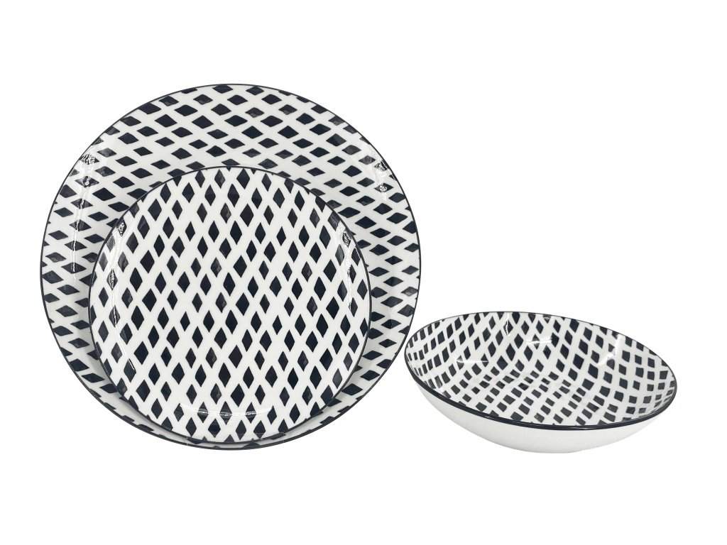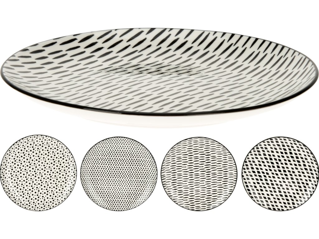 Mělký talíř BlackLine 26,5cm, káry – decentní geometrický motiv v černé.