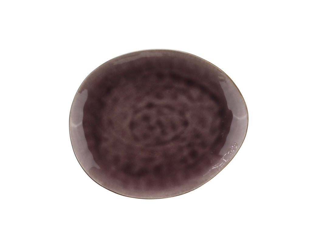 Mělký keramický talíř Deep se stříkanou glazurou v odstínech fialové barvy.