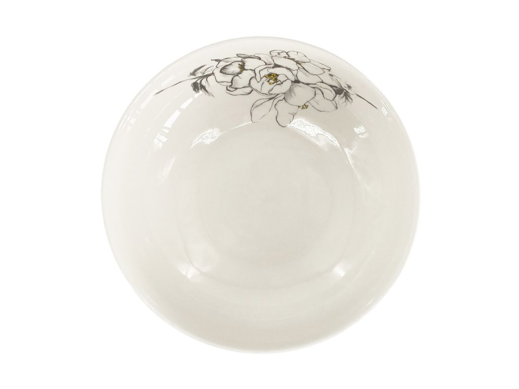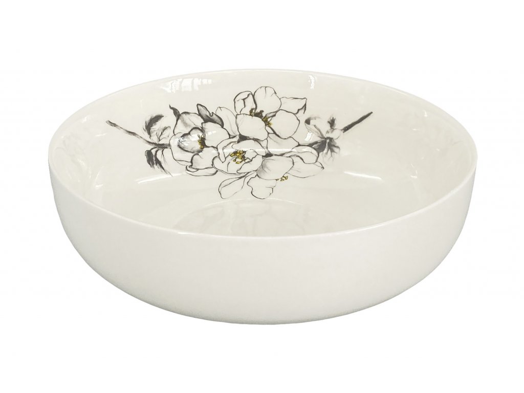 Polévková miska Fine Twig, bílá s dekorem magnolie v šedožluté barevné kombinaci.