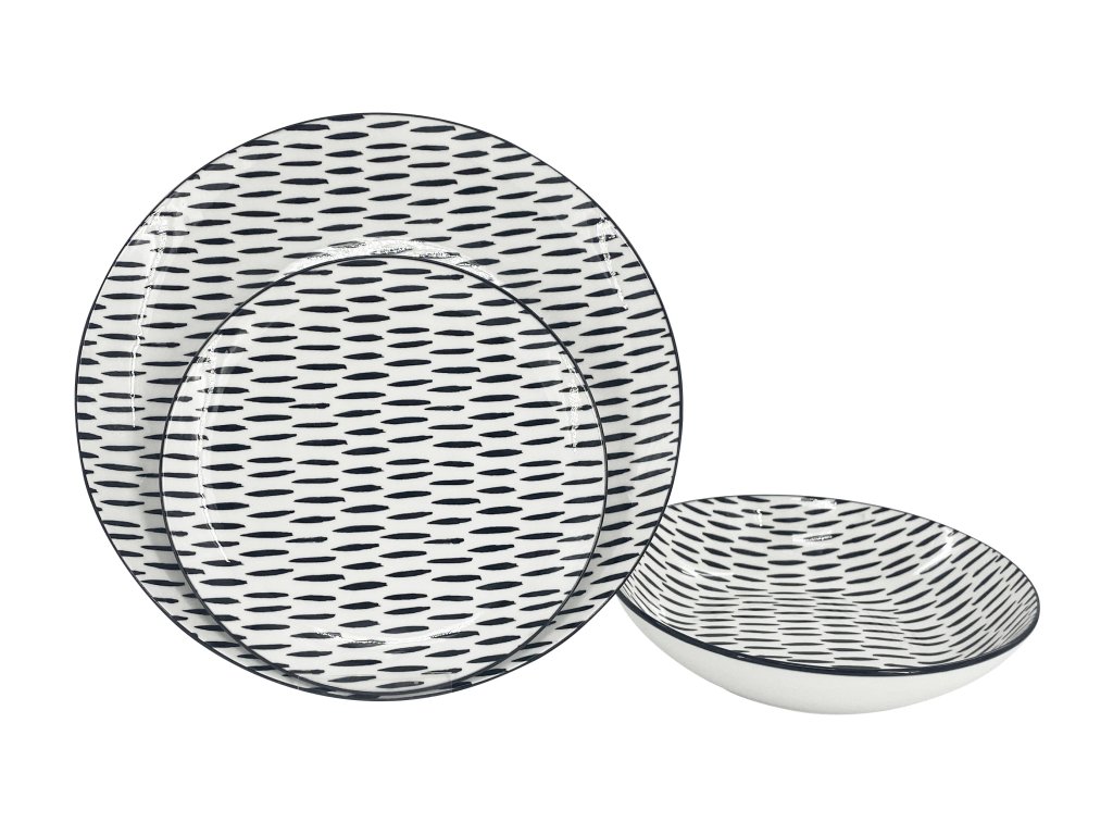 Polévkový talíř BlackLine 20cm, čárky – minimalistický vzor s dynamickými liniemi.