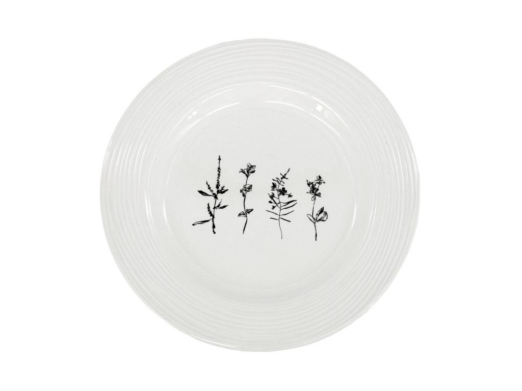 Porcelánový mělký talíř Croft Wild 27,5cm, bílá/černá – minimalistický design s embosovanými okraji a jemným dekorem lučních květin. Nadčasová elegance pro každý stůl.