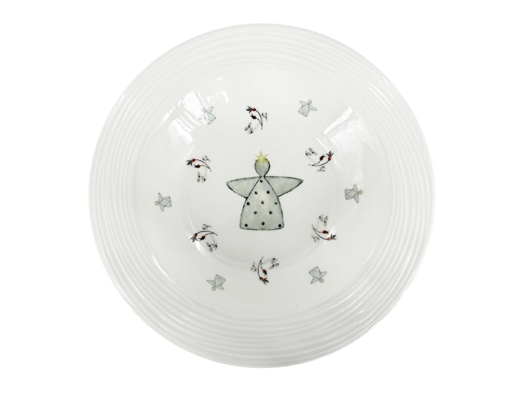 Nechte se okouzlit poezií Vánoc s porcelánovým polévkovým talířem Croft Advent Berries. S průměrem 23 cm je ideální pro servírování sváteční rybí polévky i krémových specialit. Tento talíř v sobě nese jemný příběh Vánoc, kde v jeho středu září anděl s nebeskou hvězdou. Celý motiv doplňují větvičky s malými červenými bobulemi, které talíři propůjčují slavnostní, ale zároveň decentní vzhled.