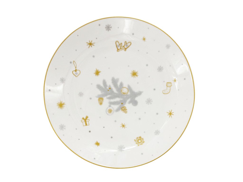 Vánoční dezertní porcelánový talíř Stříbrná Koleda, ø 19 cm, stříbrná/zlatá, II.jakost