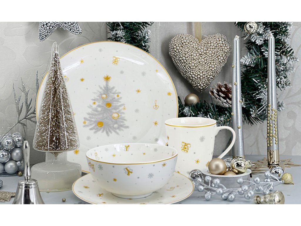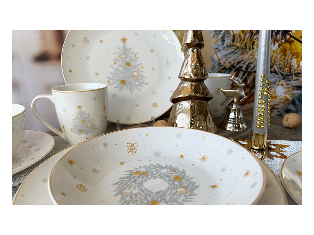Design vánočního talíře zdobí stříbrno-zlatý motiv vánočního stromku, hvězd a dárků, který v sobě nese hřejivou atmosféru svátků. Přestože je talíř klasifikován jako druhá jakost, jeho funkčnost a kouzlo zůstávají nedotčené. Důvodem snížené ceny jsou pouze malé vady porcelánu, které vznikly při výrobě, jako jsou například drobné šedé tečky pod glazurou, malé škrábance na povrchu nebo jemné bublinky v glazuře. Tyto estetické odchylky jsou minimální a nemají vliv na používání, odolnost v myčce či mikrovlnné troubě. Nabízíme tak jedinečnou možnost získat tento luxusní vánoční porcelán za výhodnější cenu.