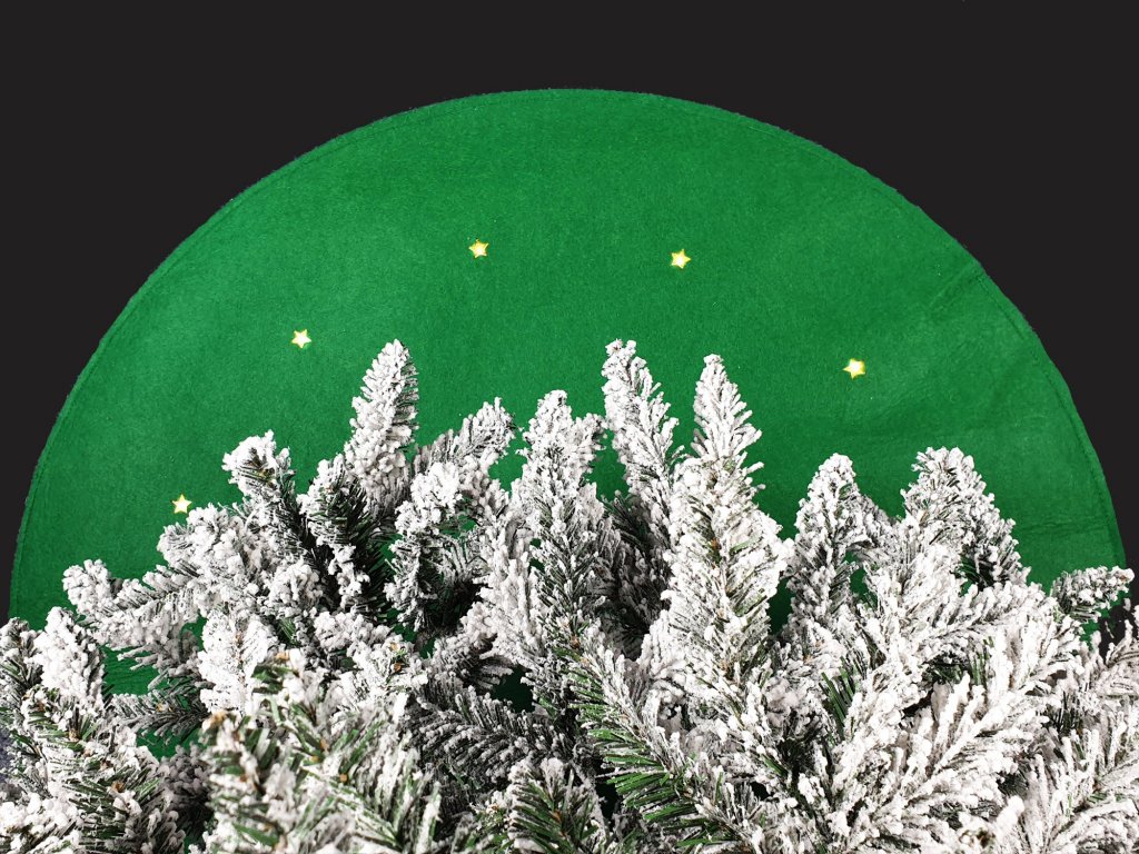 Kulatý zelený koberec, který v sobě obsahuje 12 LED hvězdiček.