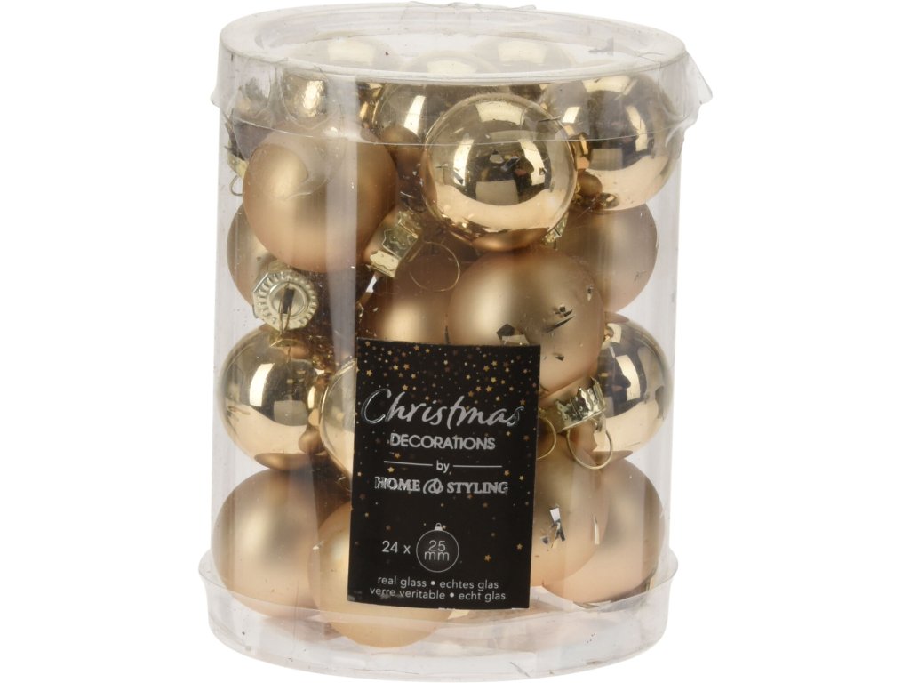 Sada 24ks vánočních ozdob koule 2,5cm, zlatá