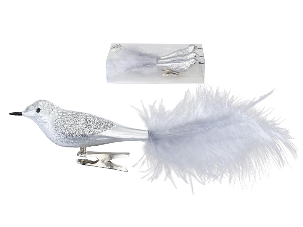 Sada 3 ks: Ptáček na klipu stříbrný 20 cm