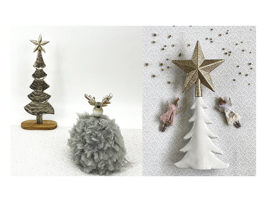 Sada vánočních ozdob – ø 3 cm, 9 ks, stříbrná barva, skleněné míčky a figurky s motivy Vánoc.