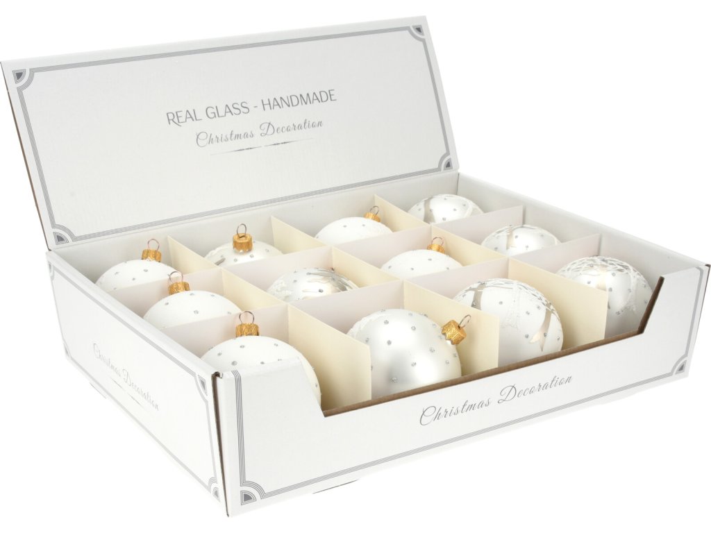 Dodejte svému vánočnímu stromečku jiskru elegance s touto skleněnou vánoční ozdobou s originálním designem. Koule je vyrobena z foukaného skla a má na bílém základu jemný motiv jehličnatého stromečku s třpytivými body, které evokují dojem opadávajících jehliček. Tento neotřelý detail dodá vaší dekoraci jedinečný a moderní vzhled. S průměrem 8 cm je ozdoba ideální pro zdobení vánočního stromečku, ale skvěle se hodí i do nejrůznějších vánočních aranžmá. Pro dokonalou dekoraci můžete tuto kouli kombinovat s ostatními barvami a designy z kolekce, jako je například perleťová varianta.