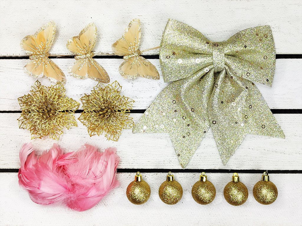 | Barva vánočních ozdob: | bílá, zlatá, růžová, champagne, hnědá |