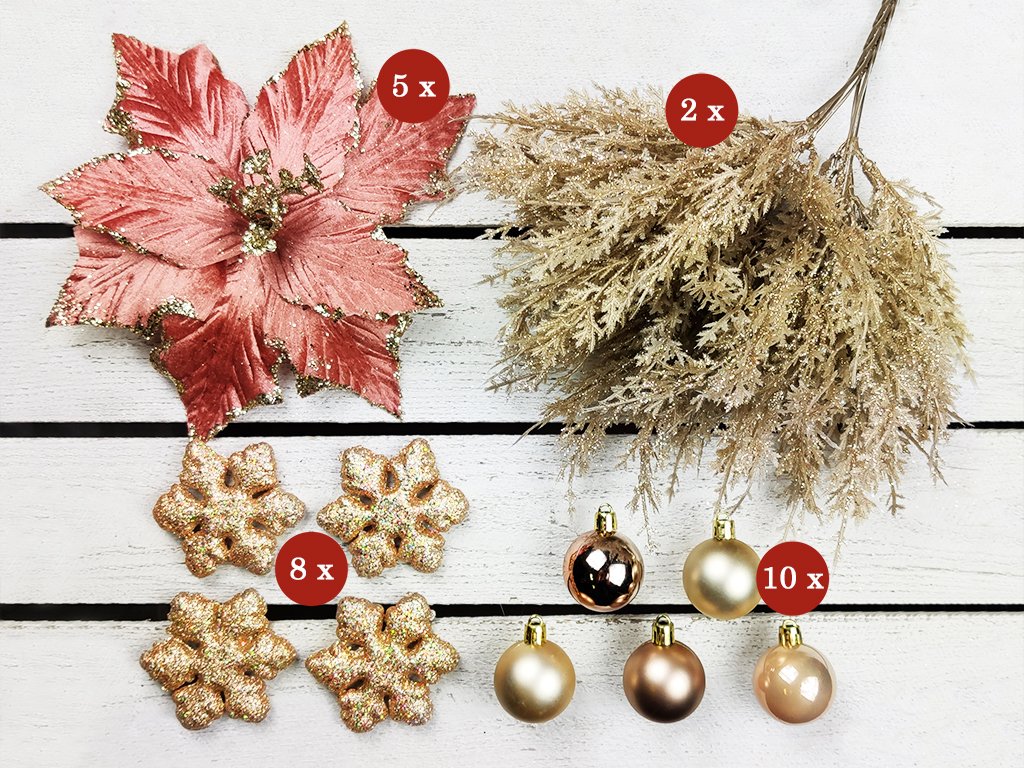 | Barva vánočních ozdob: | růžová, champagne, hnědá |