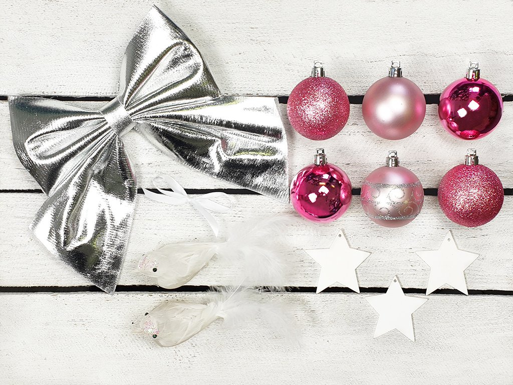 | Barva vánočních ozdob: | bílá, stříbrná, růžová |