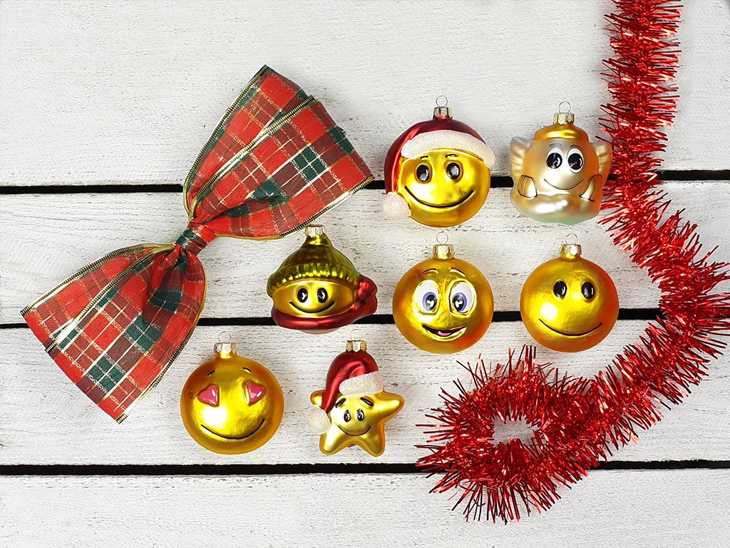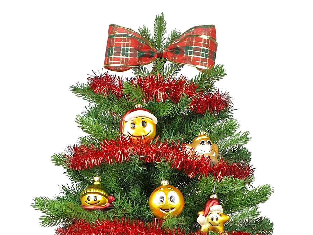 Pro fanoušky veselých vánočních ozdob je tu ozdobený stromeček Smajlíci.