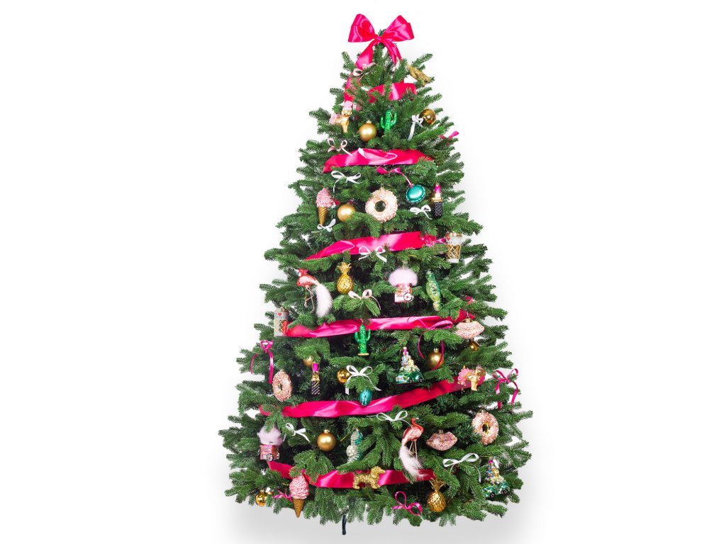 Ozdobený stromeček ŠŤASTNÉ A RŮŽOVÉ 180 cm