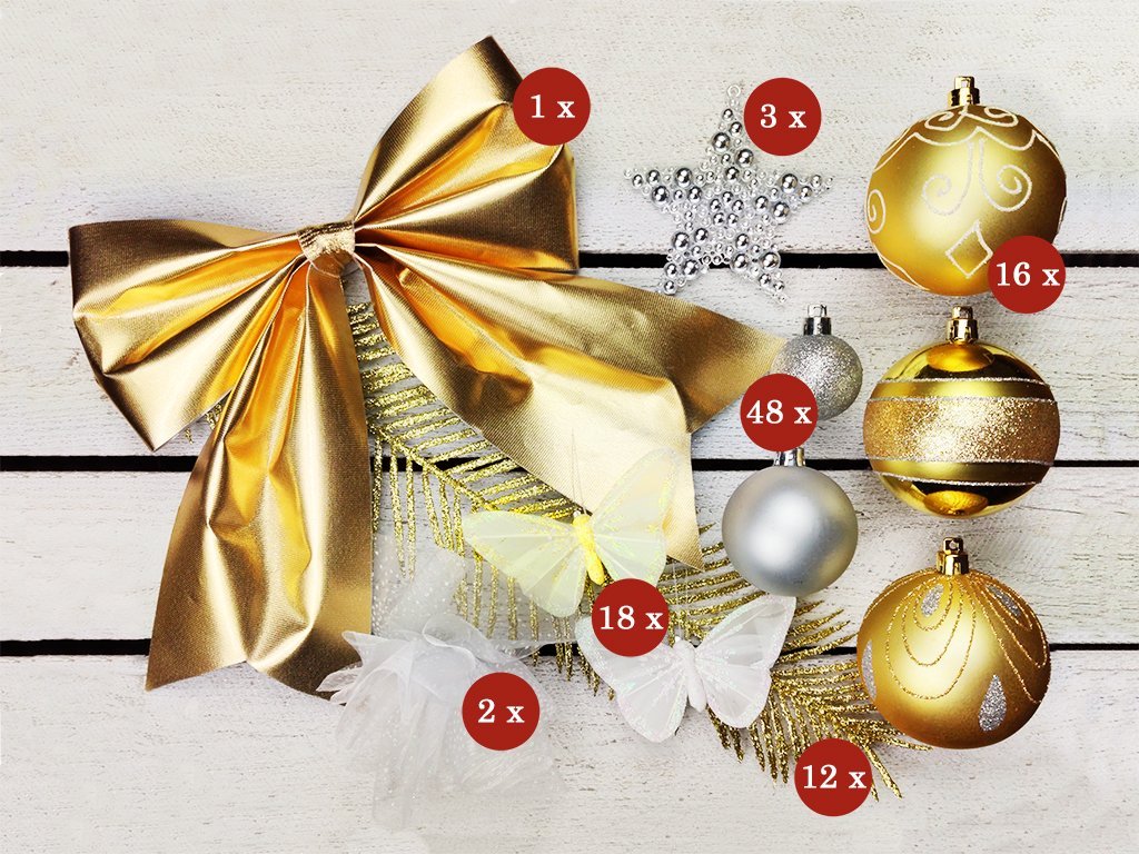 | Barva vánočních ozdob: | bílá, stříbrná, zlatá, champagne |