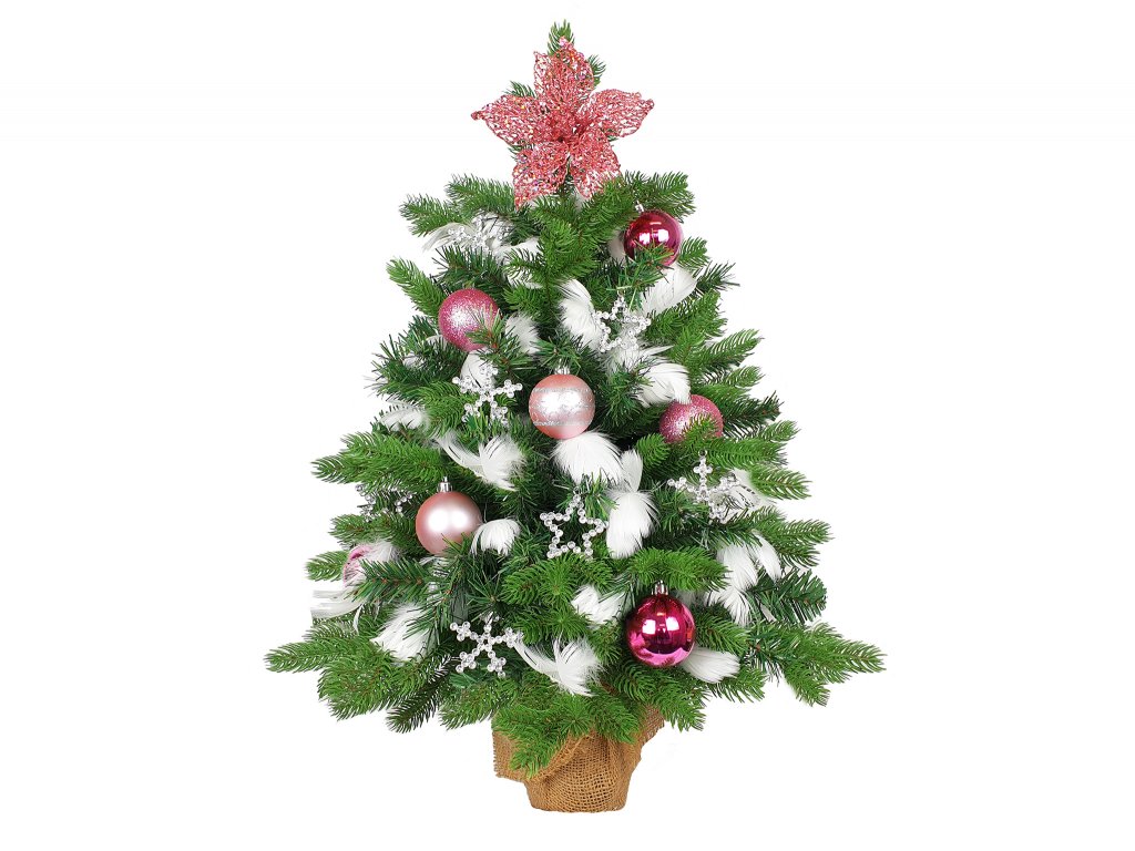 Vánoční ozdobený stromeček včetně 85 ks ozdob a dekorací.